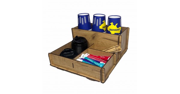 Органайзер-подставка для стаканчиков кофе, салфеток, трубочек и стиков сахара (4 отделения, ЛХДФ, ду..
