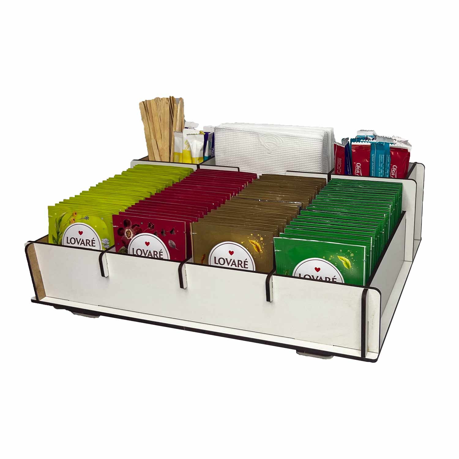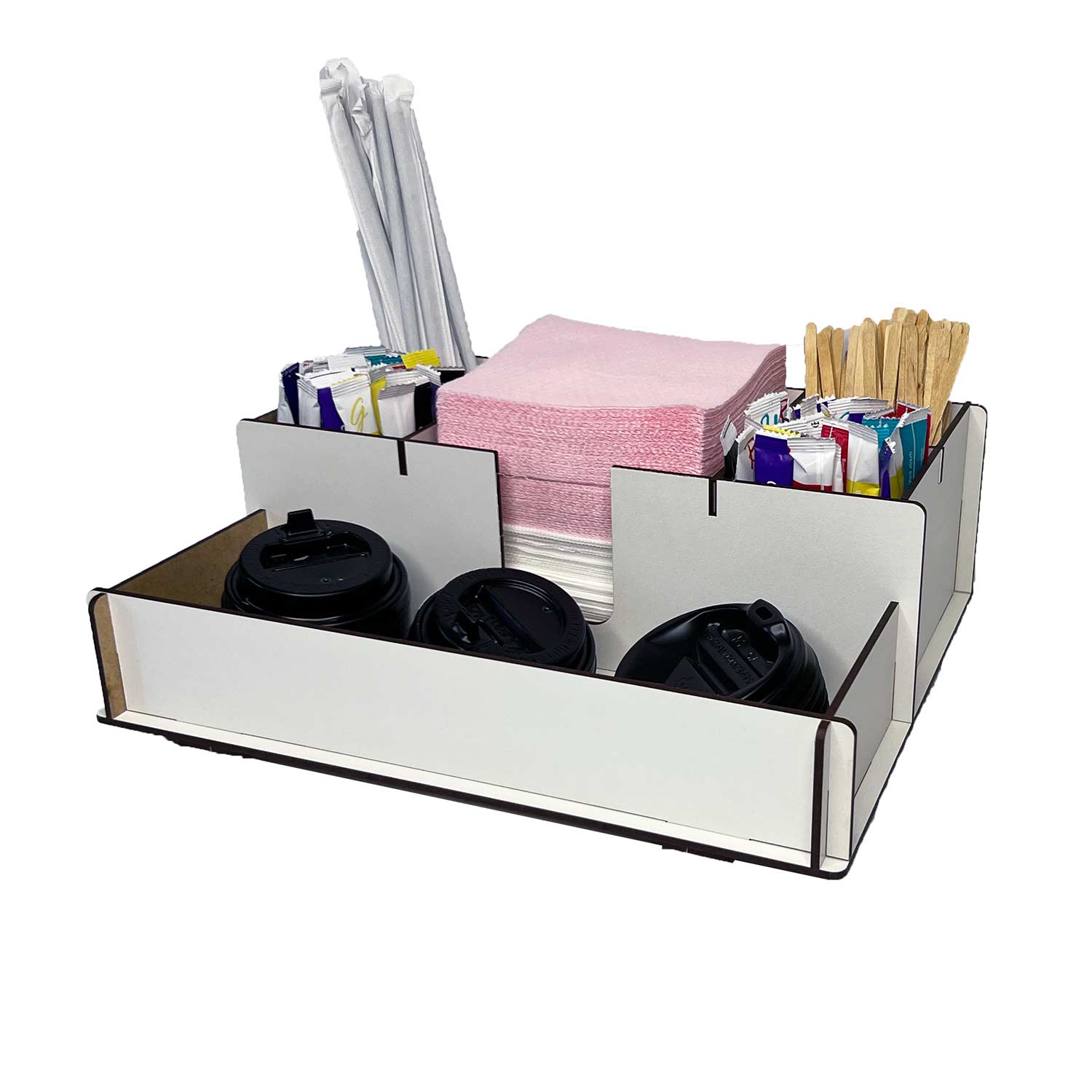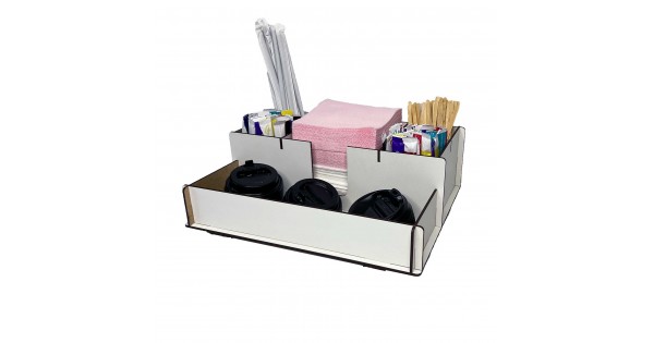 Органайзер-подставка для стаканчиков кофе, салфеток, трубочек и стиков сахара (4 отделения, ЛХДФ, бе..