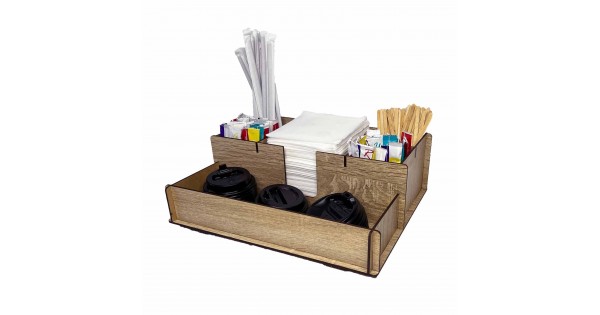 Органайзер-подставка для стаканчиков кофе, салфеток, трубочек и стиков сахара (7 отделений, дуб)Функ..