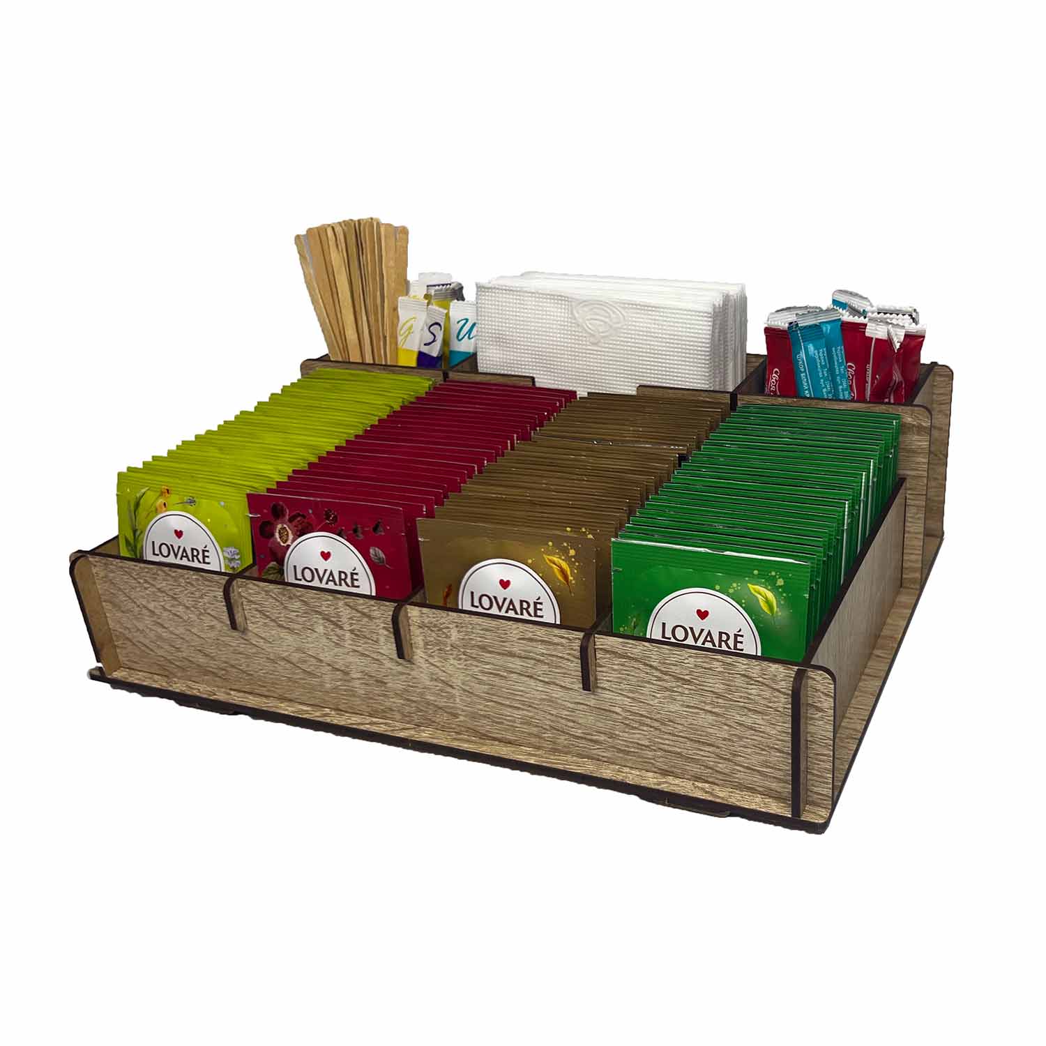 Барный органайзер-подставка для пакетов чая, салфеток в кофейню 7 отделений дуб
