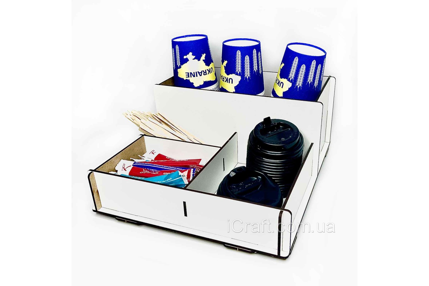 Органайзер-підставка для стаканчиків кави, серветок, трубочок і стіків цукру (4 відділення, ЛХДФ, білий)