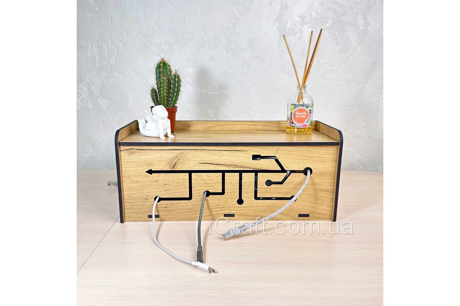 Полка-органайзер для проводов и электроники 30*30*20 см дуб